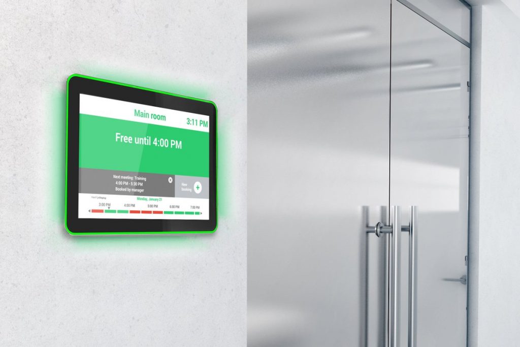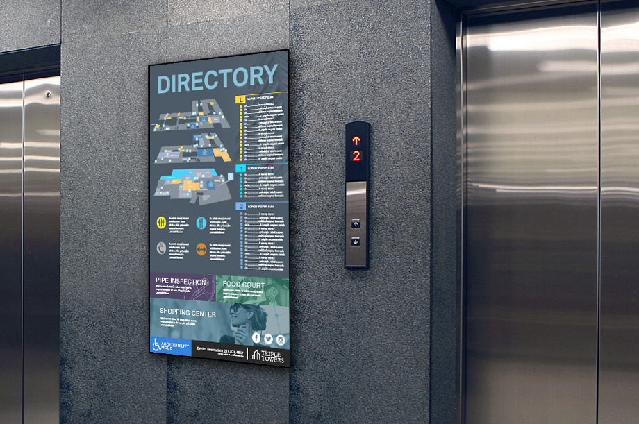 Elektronische Anzeigen, die in der Eingangshalle oder Empfangsbereich eines Gebäudes oder einer Einrichtung verwendet werden, um Informationen anzuzeigen.
